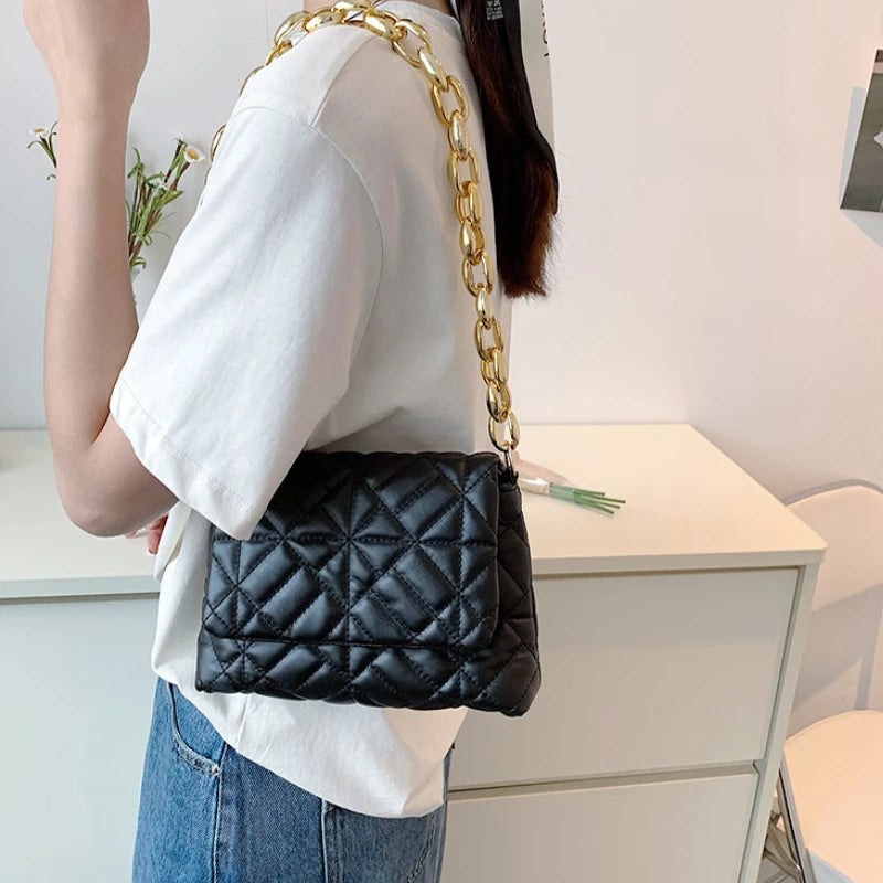Plaid Shoulder Bag with Thick Chain for Women Handbags and Purses