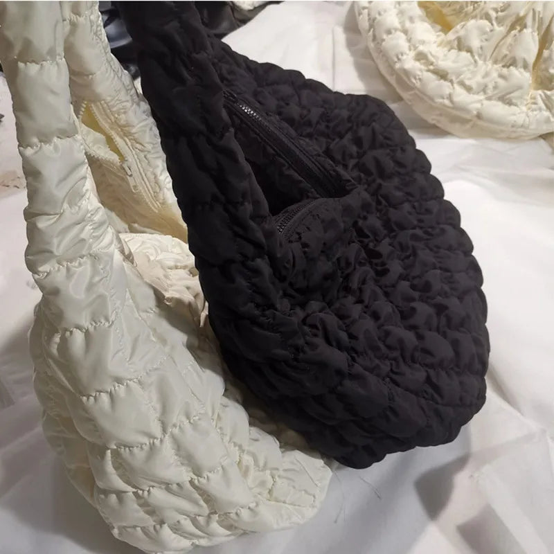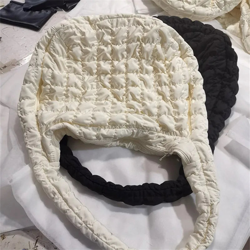 Pleated Handbag Large Capacity Down Bag Big Shoulder Female Solid Space Cotton P