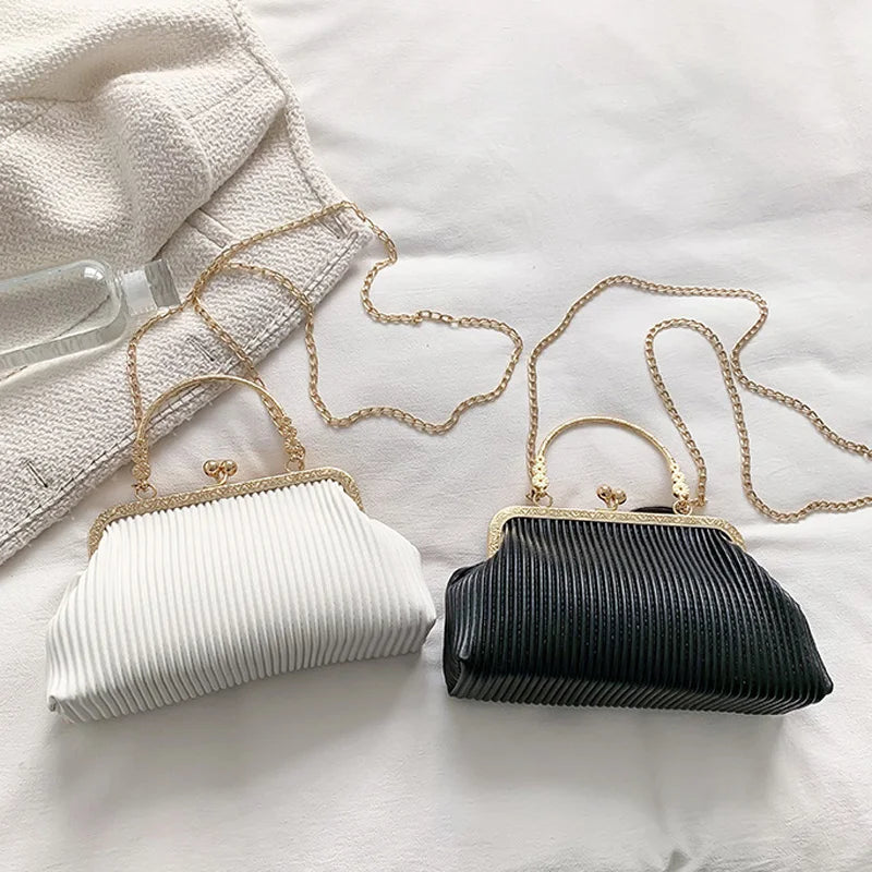 Pleated Messenger Bag Chain Purse Metal Handle Handbag Tote Bags for Women