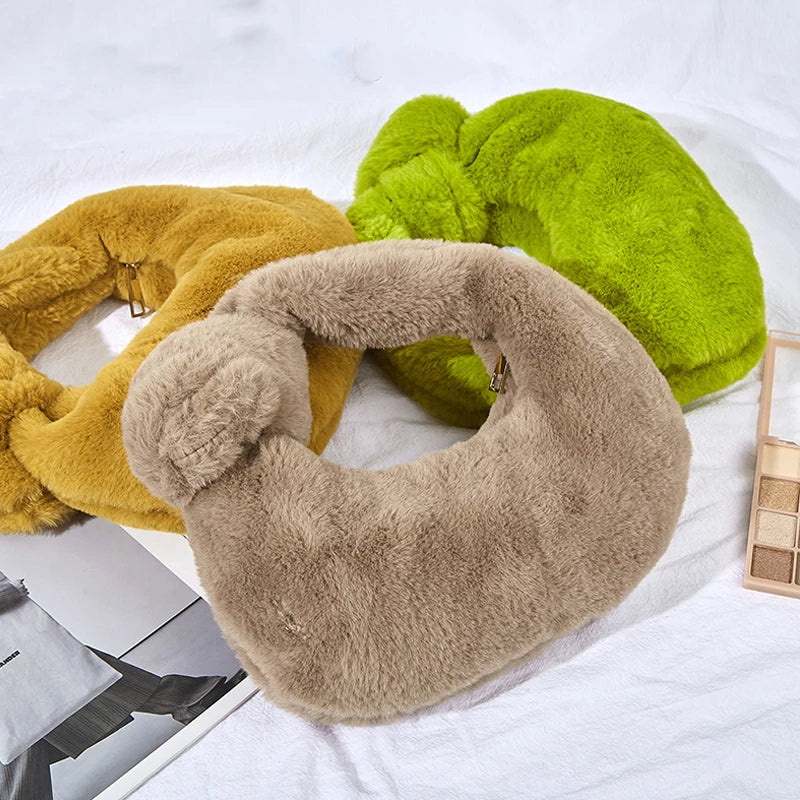 Plush Handbag Soft Shoulder Bag Winter Warm Top-handle Casual Small Wallet