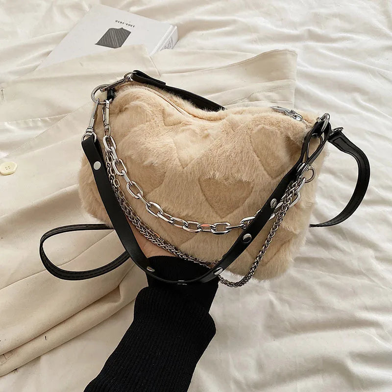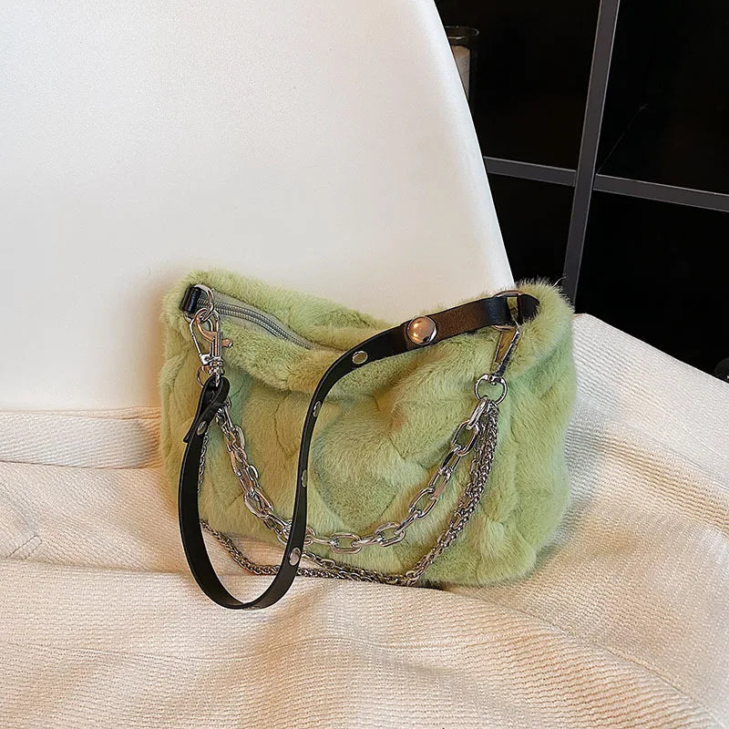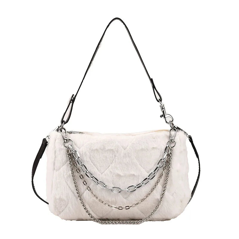 Plush Handbag with Fine Chains Texture Shoulder Bag