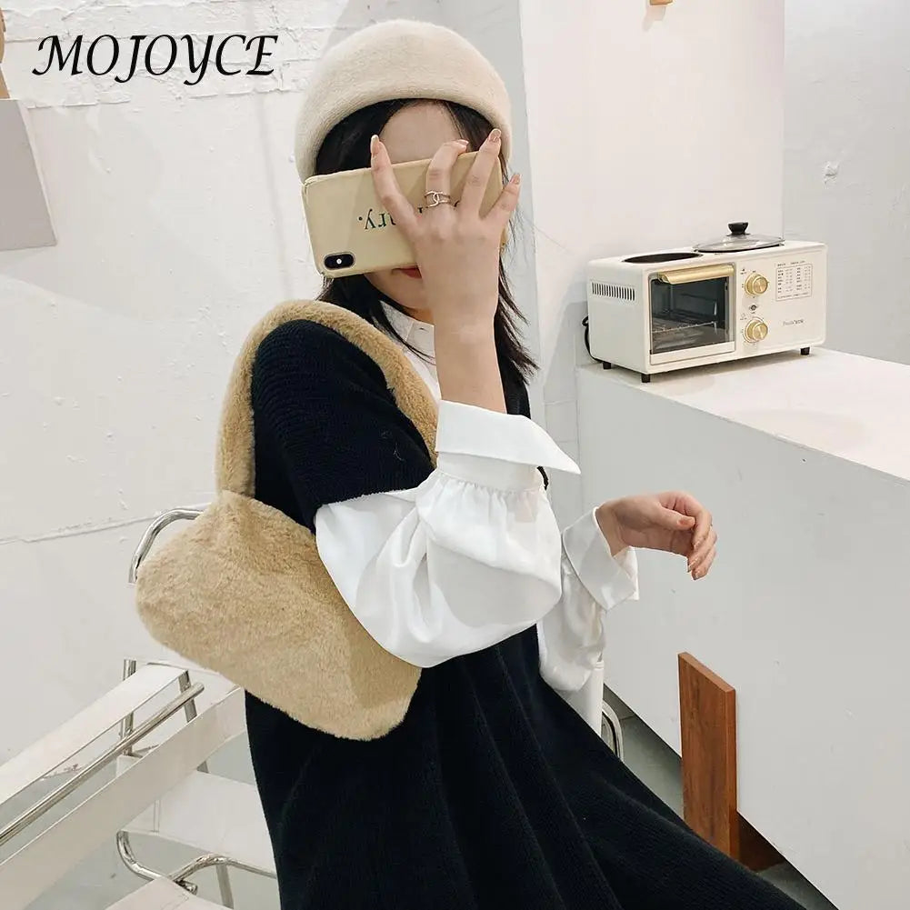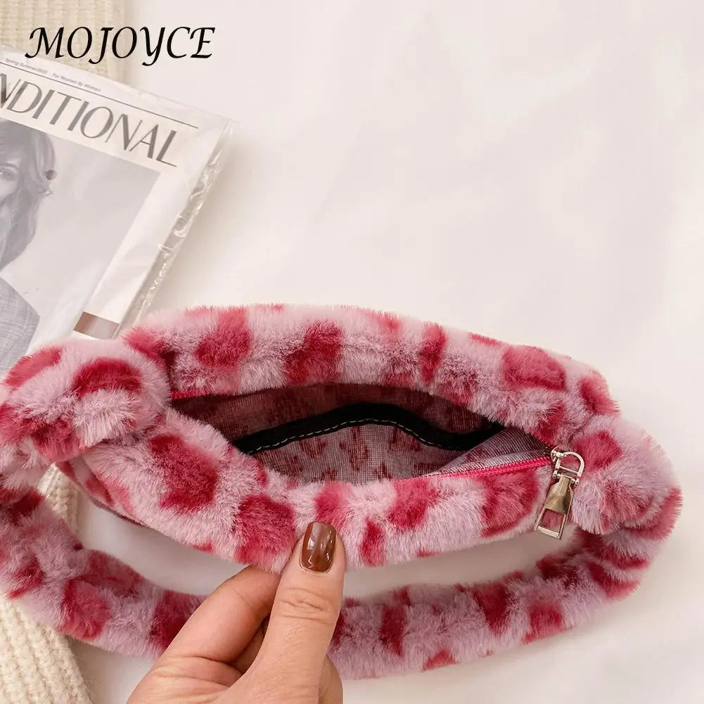Plush Leopard Underarm Bag Mini Tote Bags Purse