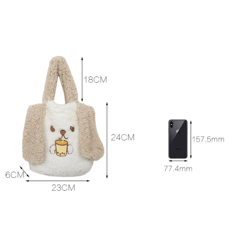 This soft plush shoulder bag is perfect for autumn and winter. It features a cute cartoon design, making it a fun accessory for girls. The portable handbag is ideal for casual use.