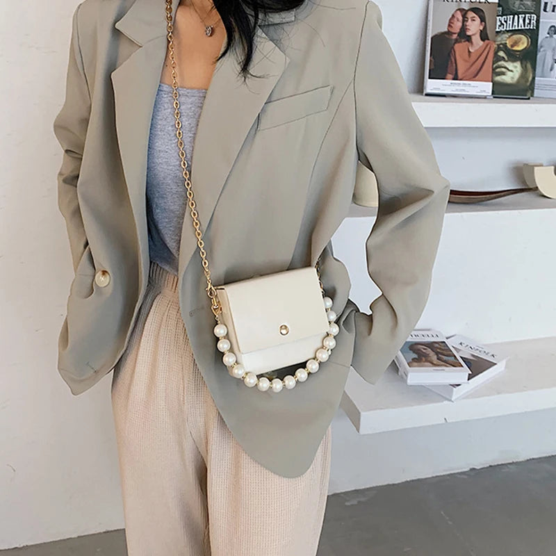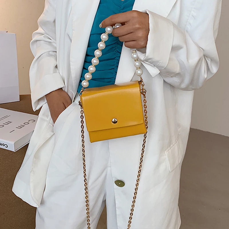 Pu Beaded Handbag Women Crossbody Bag Soft-Faced Square Shoulder Bag
