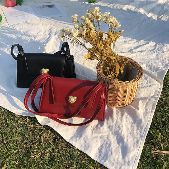 This fashionable PU leather purse is perfect for women looking for a stylish yet compact handbag. It features a retro design with a heart-shaped detail, making it a great accessory for any outfit.