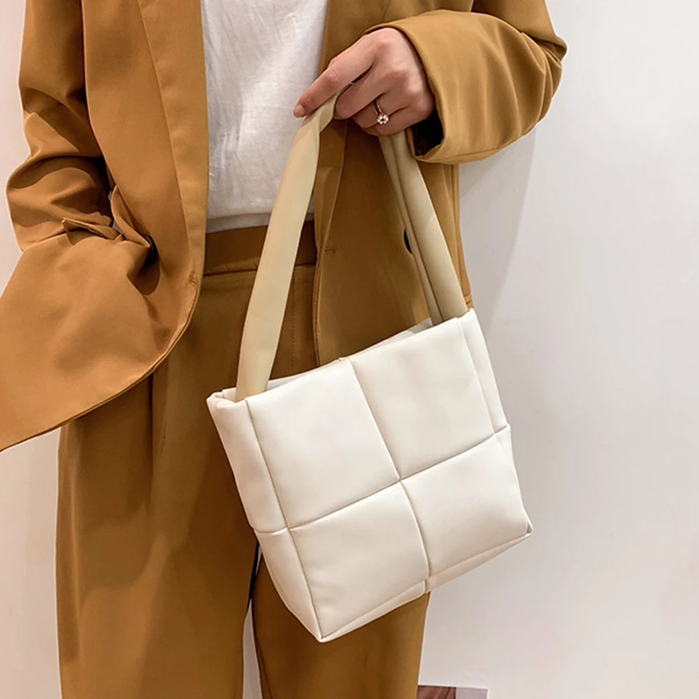 Stay stylish with this fashionable handbag featuring a lattice pattern design. Made of space cotton, it's perfect for winter with its padded quilted nylon material. Ideal for travel and daily use.