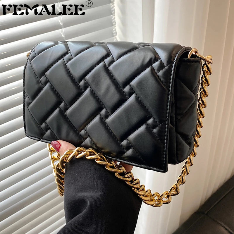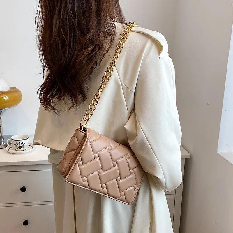 This small shoulder bag is made of high-quality leather and features a metal chain strap. It has a flap closure and a chic quilted design, perfect for a retro-inspired look.