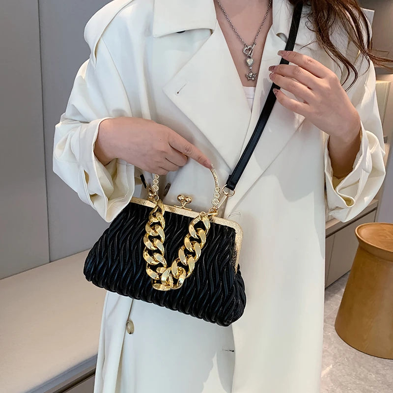This chic quilted purse is perfect for women who want a stylish yet practical accessory. It features a solid color design and can be worn as a handbag or crossbody bag.