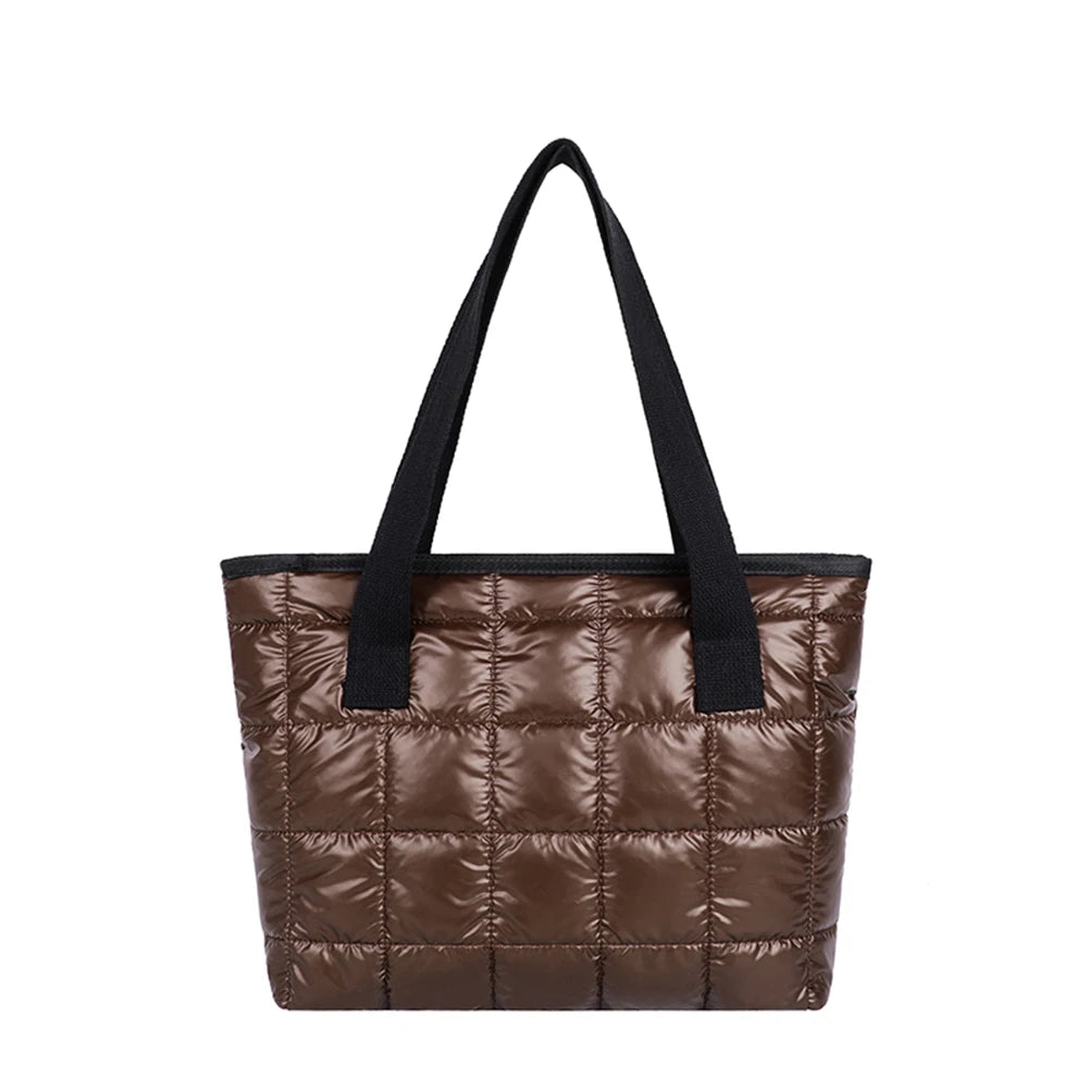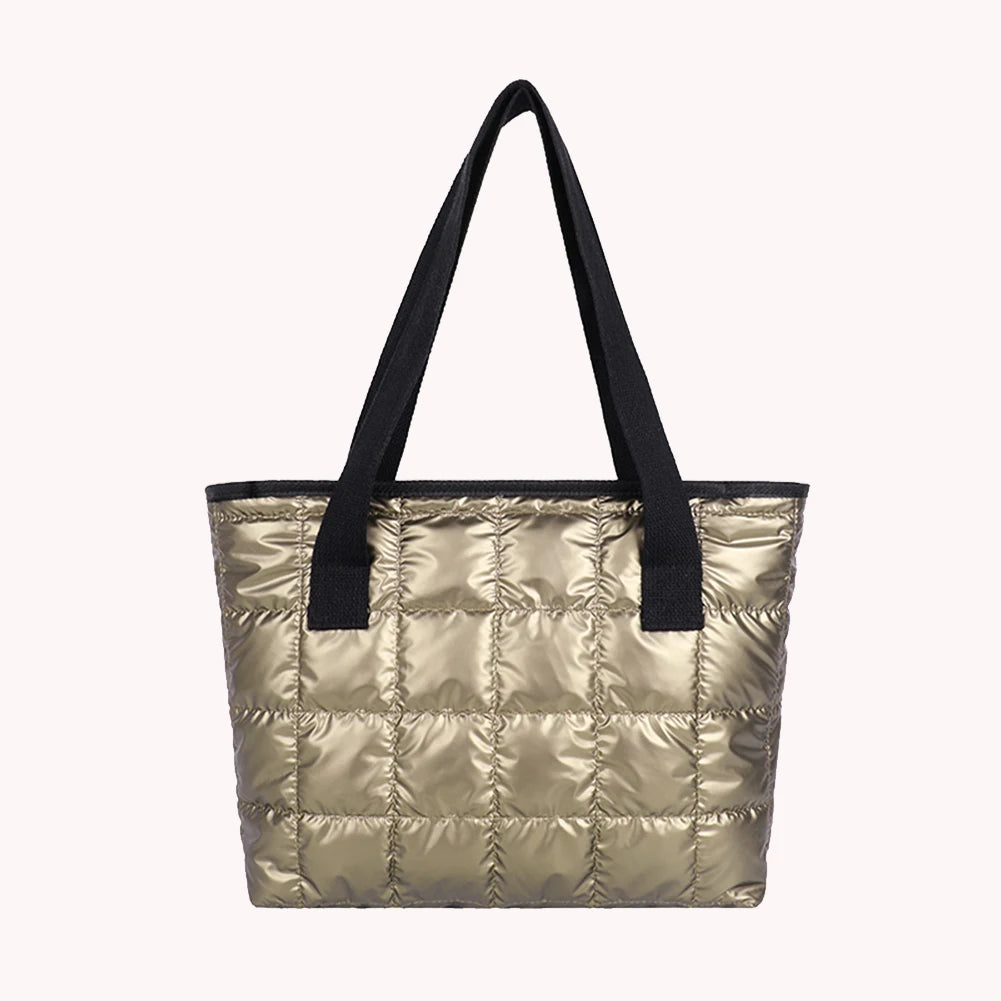 Quilted Nylon Shoulder Bag Padded Handbag Large Tote for Women Winter Purse