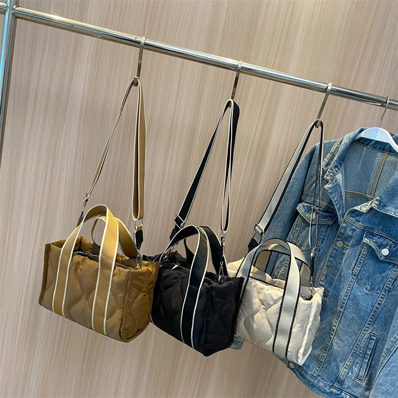 Quilted Nylon Women Handbags Padded Shoulder Bag Wide Strap Crossbody Tote