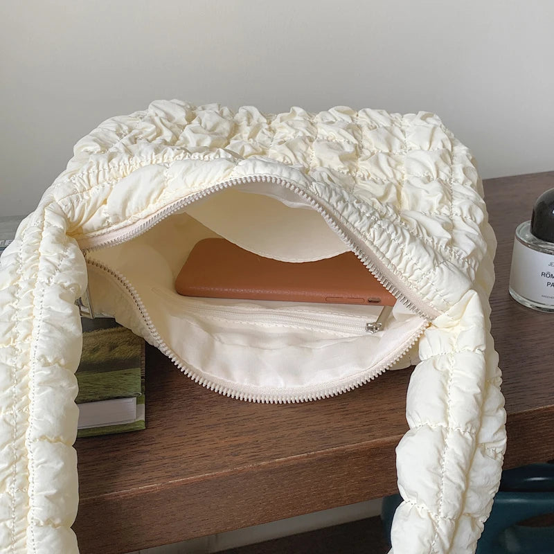 Stay stylish with this plicated women's bag featuring a zipper closure. Perfect for carrying essentials in everyday use.