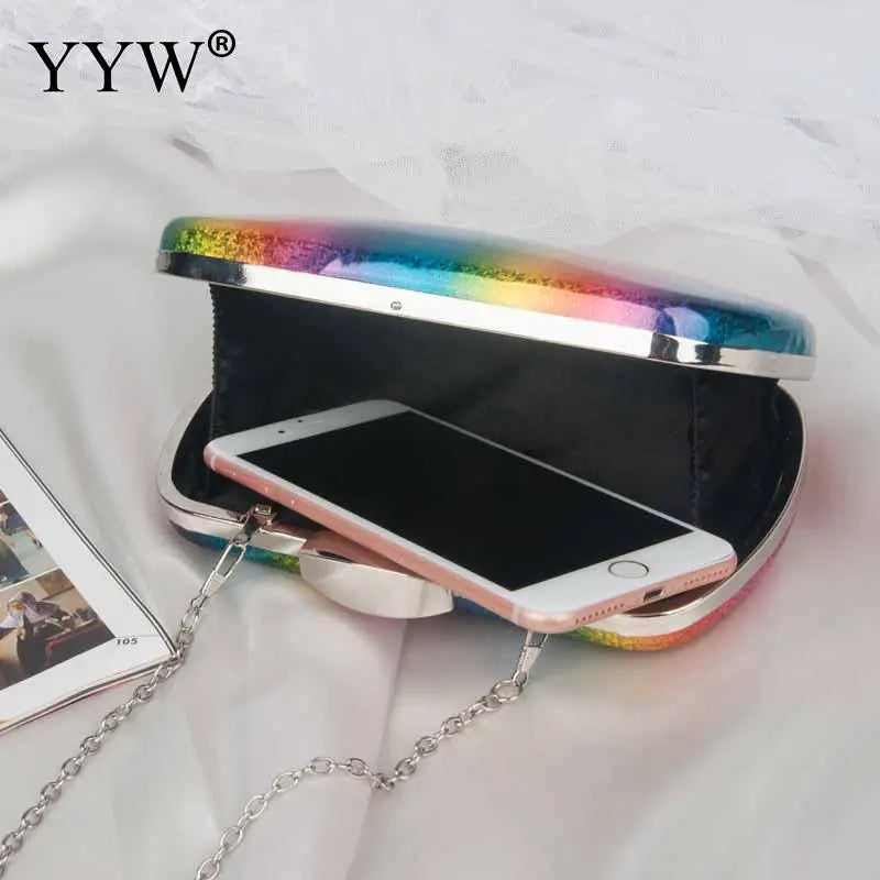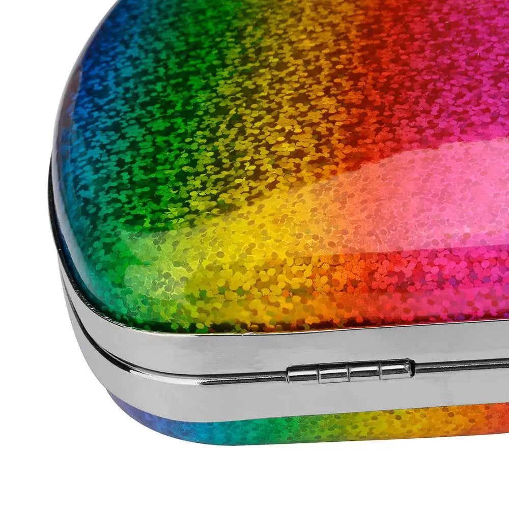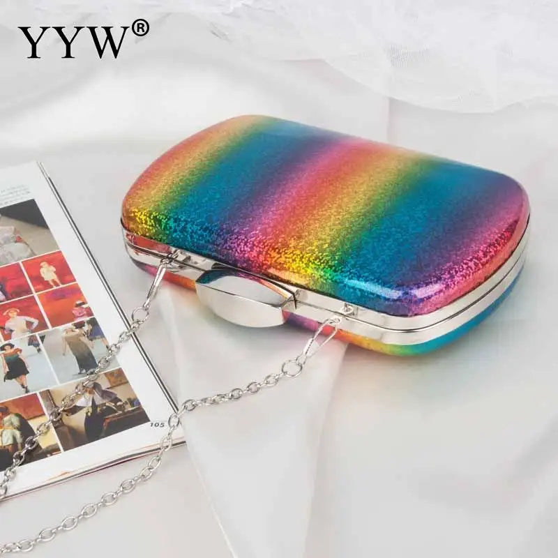 This stylish evening bag is perfect for parties, weddings, and special occasions. It features a rainbow box design that adds a fun and colorful touch to your outfit.