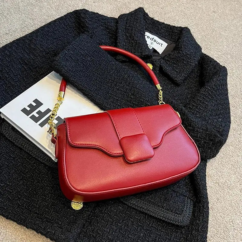 - Versatile red shoulder bag for women
