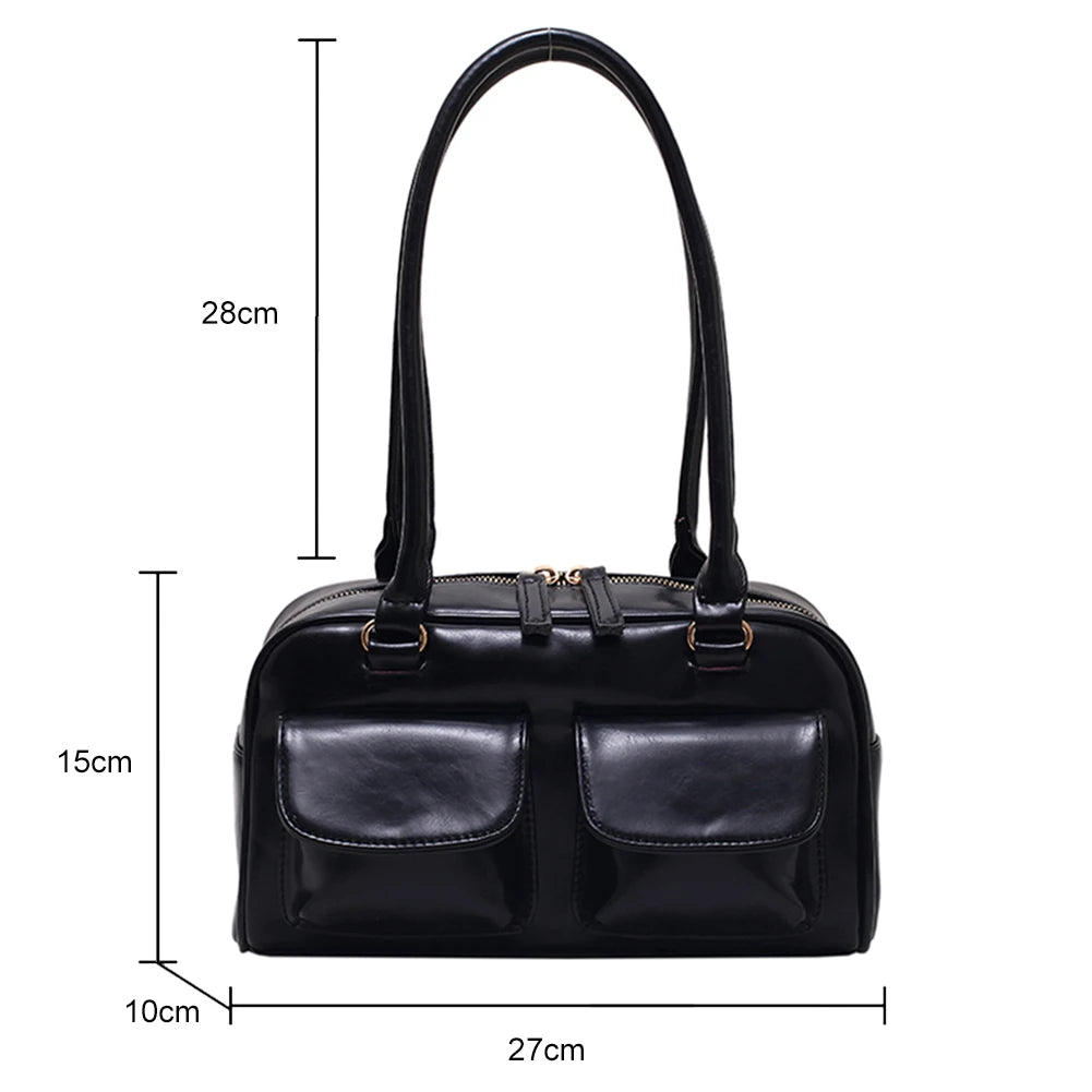 Stay stylish with this retro red satchel hobo bag made of patent leather. It features a convenient pocket and can be worn as a shoulder or underarm bag.
