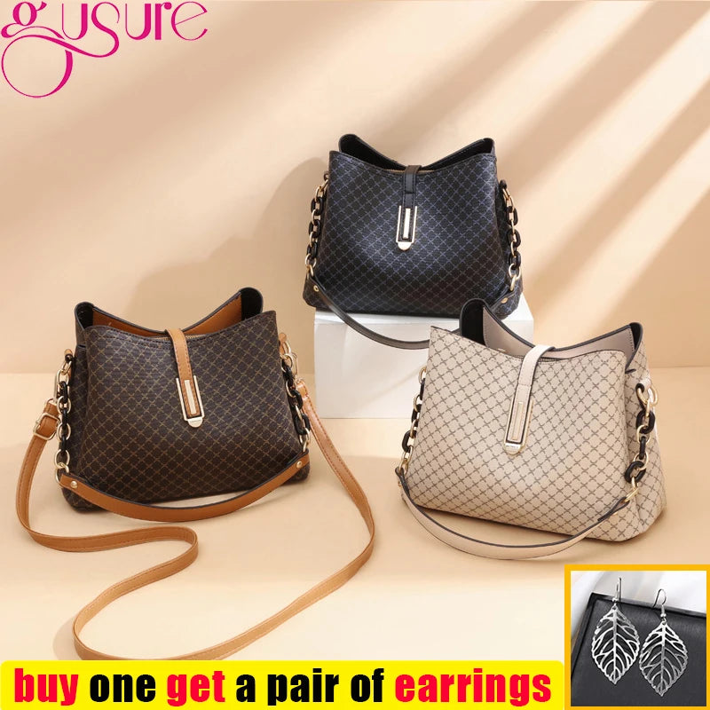Retro Bucket Crossbody Bag Travel Purse Handbag Letter Print Shoulder