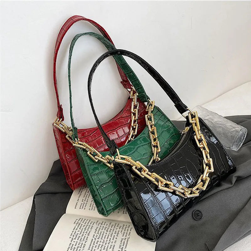 - Features chain handles for added style