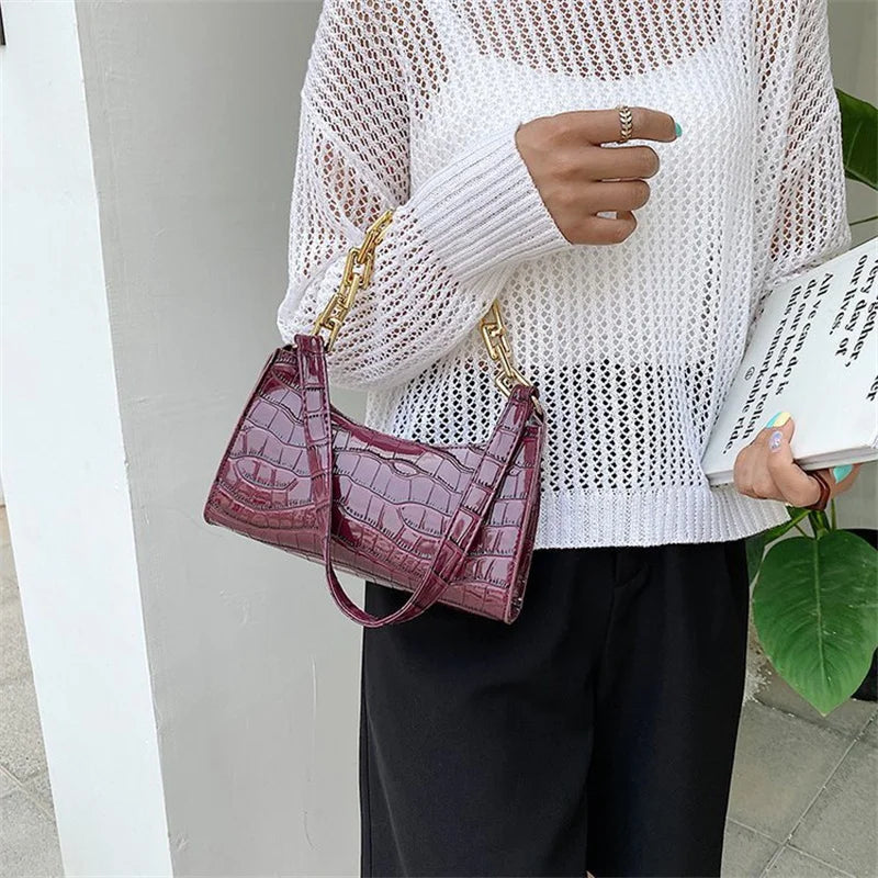 Stay stylish with this retro casual shoulder bag perfect for shopping. Made of PU leather with chain handles, this tote is a versatile addition to your wardrobe.