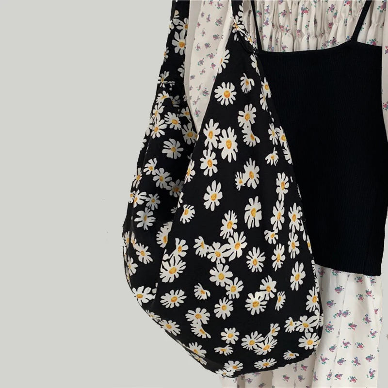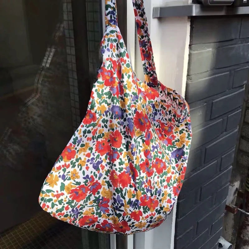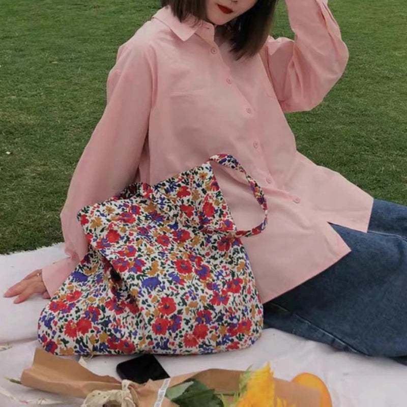 Retro Floral Women Shoulder Messenger Bag Thin Cotton Cloth Ladies Shopping Bags