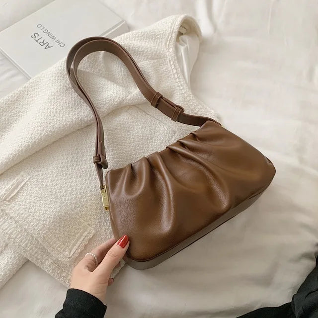 Stay stylish and organized with this retro PU leather shoulder bag featuring pleats. Perfect for winter, this crossbody bag is both functional and fashionable.