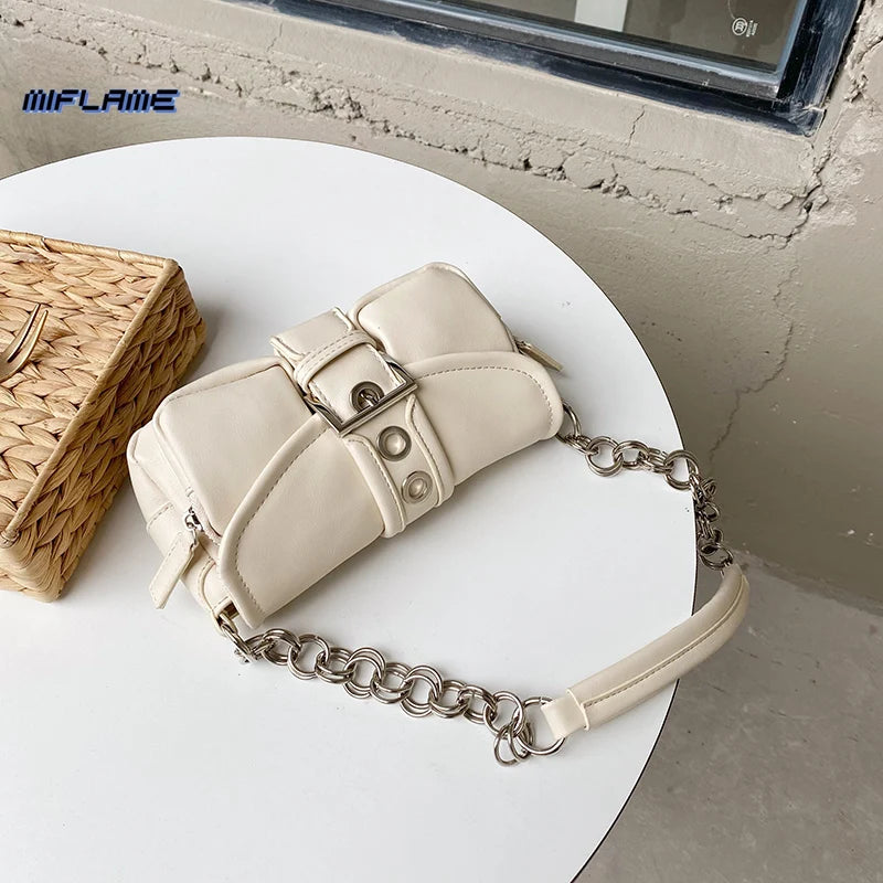 Elegant and stylish retro women's chain small shoulder bag made of solid PU leather. Perfect for any occasion, this armpit bag is a classy addition to your outfit.