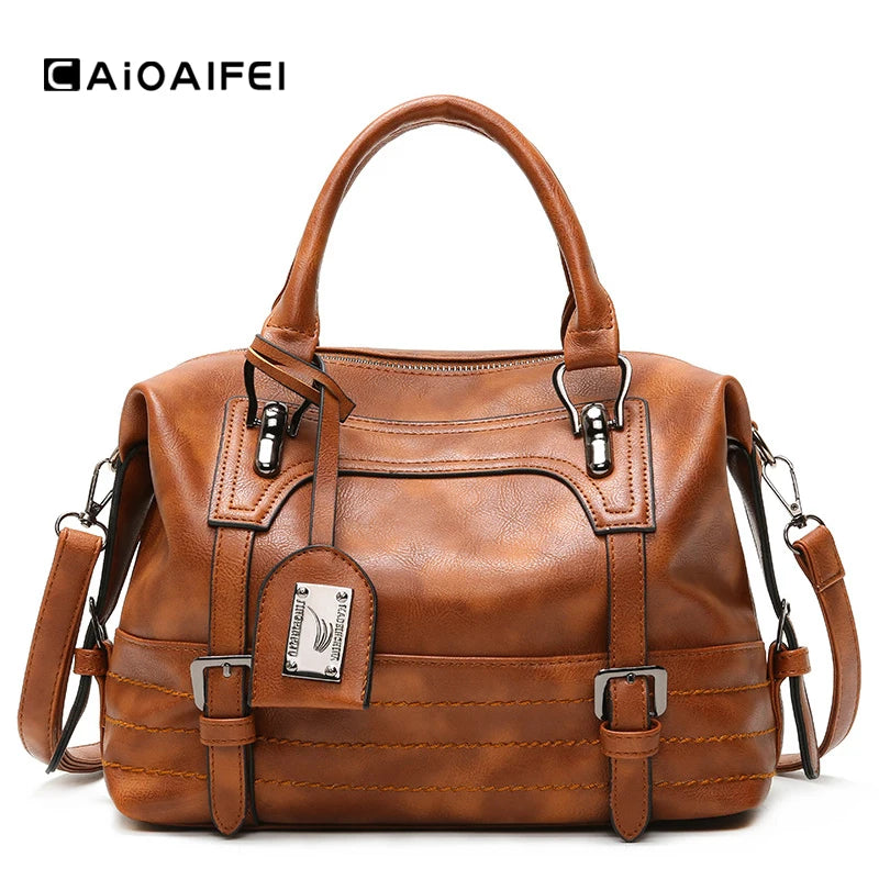 Retro Soft Oil Wax Leather Women Boston Bag Tassel Handbag