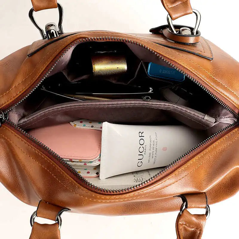 This stylish Boston bag is made of soft oil wax leather and features a tassel design. The bag has a large capacity to hold all your essentials.