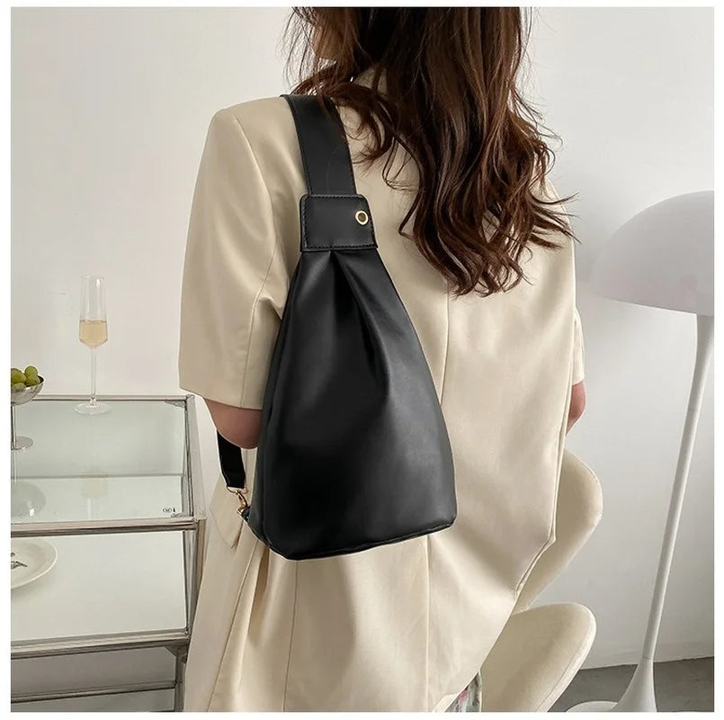 Retro Solid Backpack PU Leather Shoulder Underarm Bag Casual Women Hobos Handbag