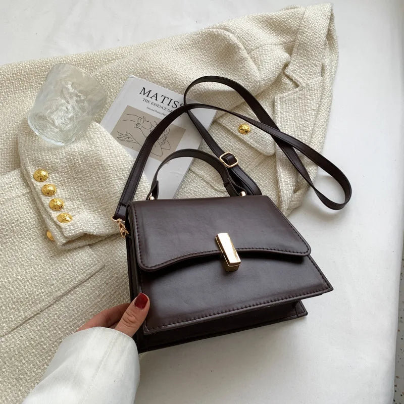 This retro square handbag is made of soft leather, perfect for women. It features narrow straps and can be worn as a shoulder bag or crossbody bag.