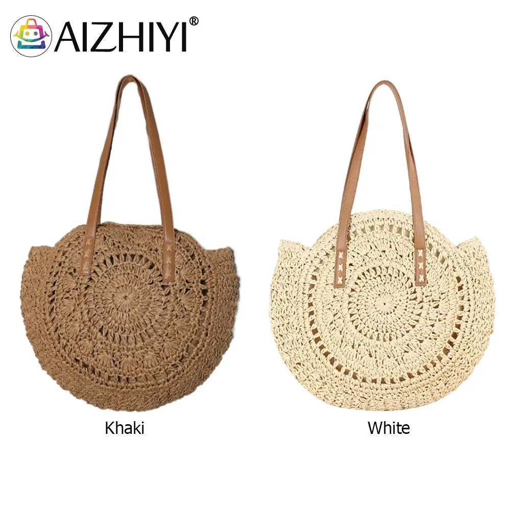 Retro Straw Woven Large Capacity Shoulder Tote Shopping Bag for Women