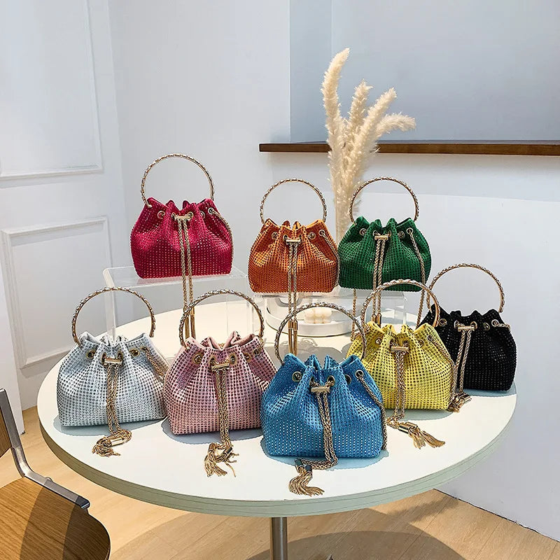 Rhinestone Bucket Bag Crossbody Clutch Evening Purse