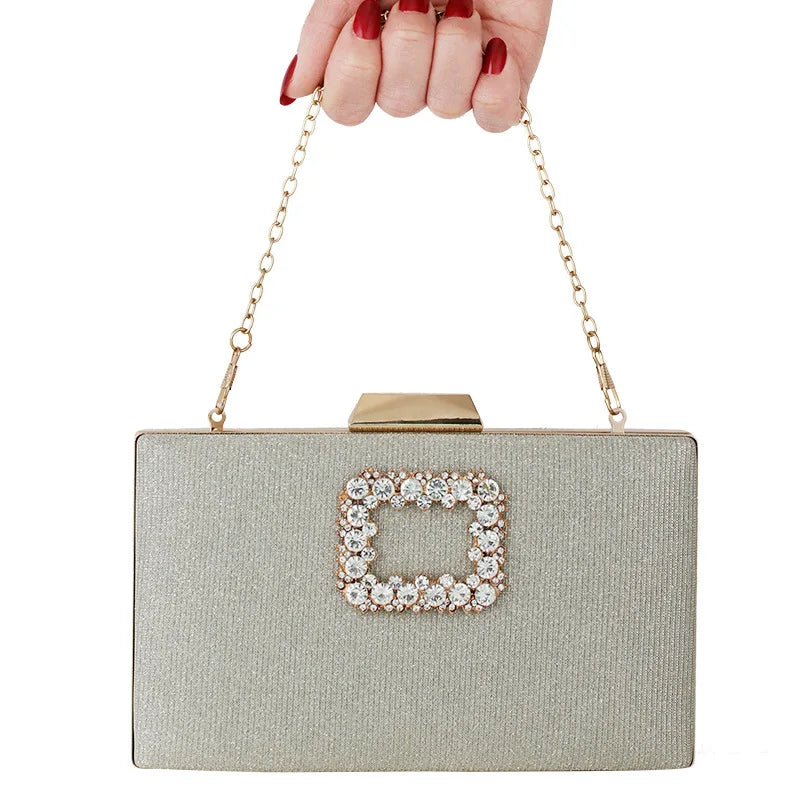 Elegant and stylish flap clutch bag for women, perfect for weddings, parties, and special occasions. Features a rhinestone design and includes a chain shoulder strap.