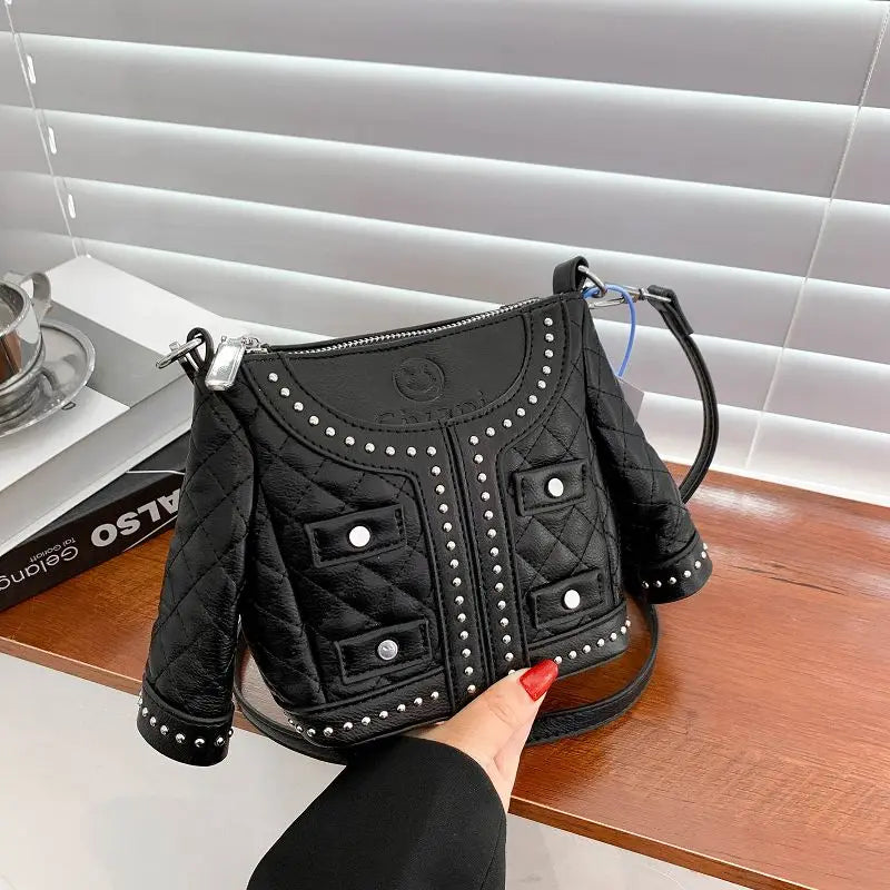 Rivet Shoulder Bag For Women Jacket Handbags Purse Ladies
