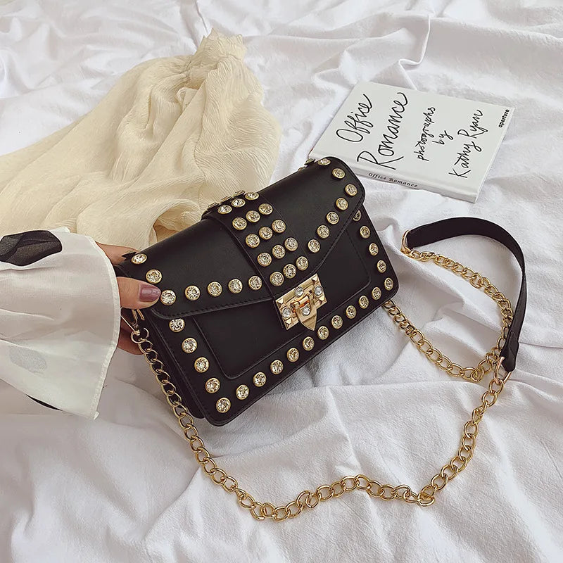 Rivets Diamond Leather Flap Small Square Shoulder Bag
