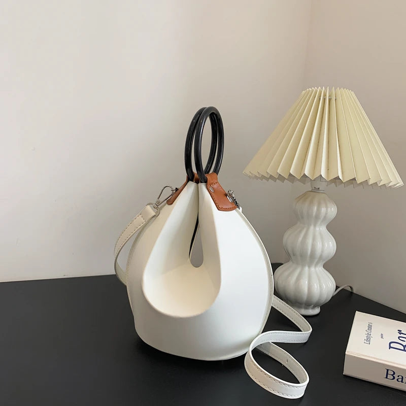 Elegant and versatile round handle crossbody bag, perfect for everyday use. Features a shoulder strap and messenger style design.