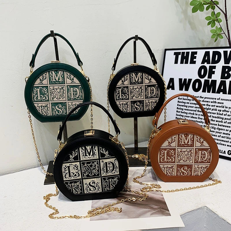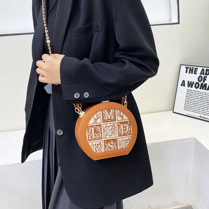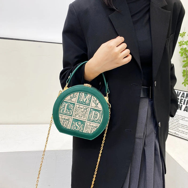 Round Letter Handbag Mini Crossbody Bag for Women Brown Green Shoulder Bag