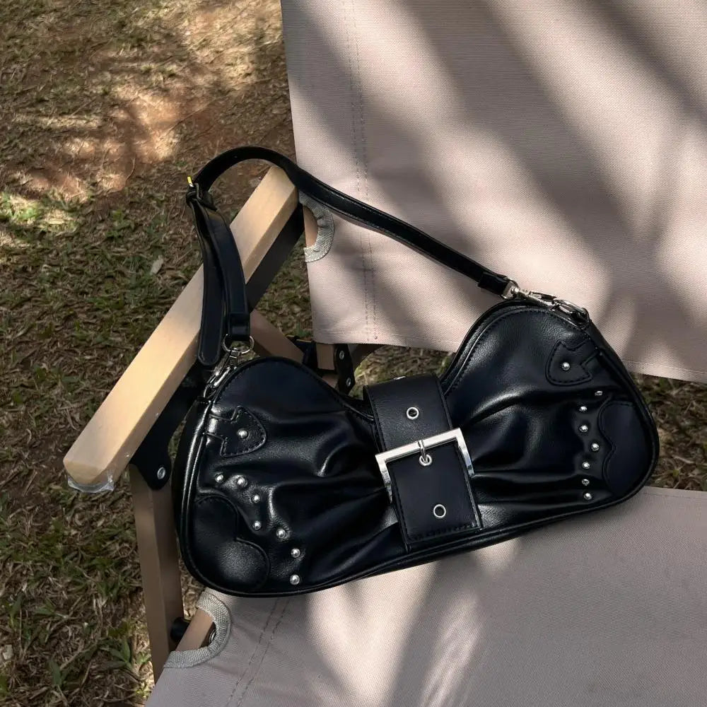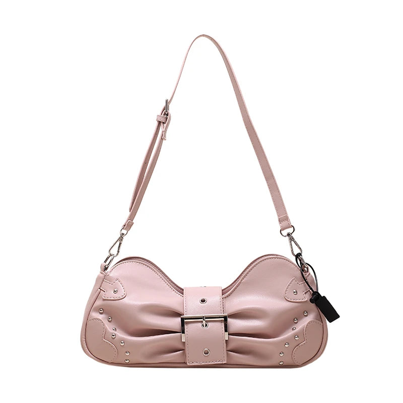 Ruched Bow Shoulder Bag Women Tote Messenger Handbag Underarm Purse