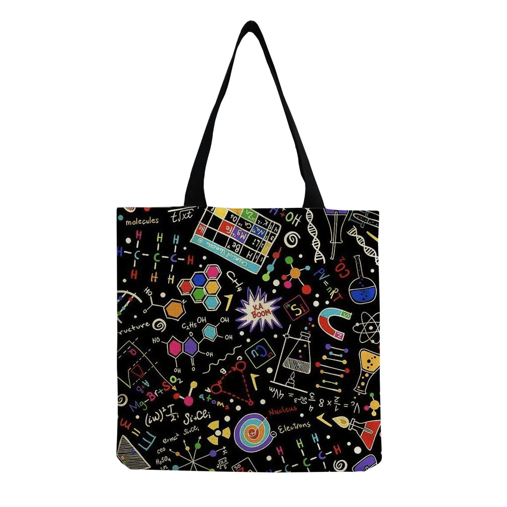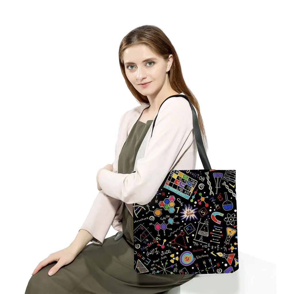 Science Print School Teacher Tote Bag Natural Science Handbag