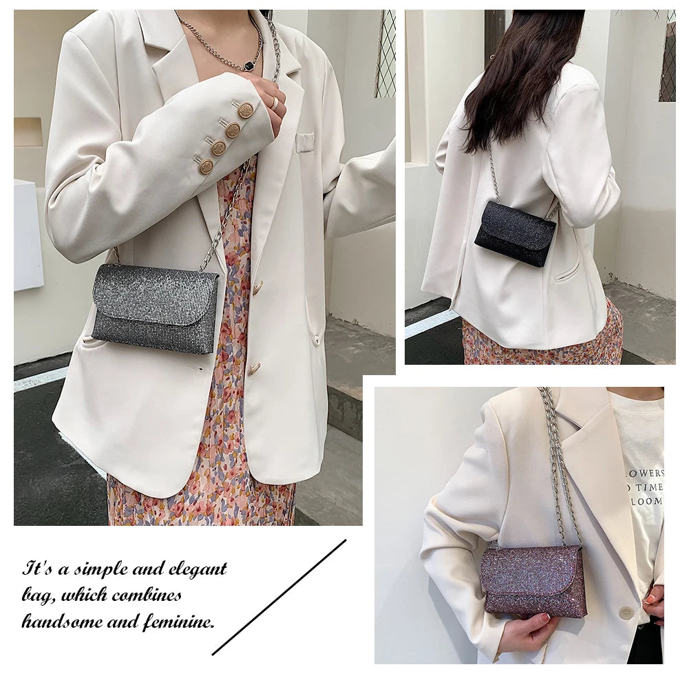 Add some glamour to your evening outfit with this sparkling sequins clutch bag. Made of high-quality PU material, this clutch is perfect for special occasions and parties.