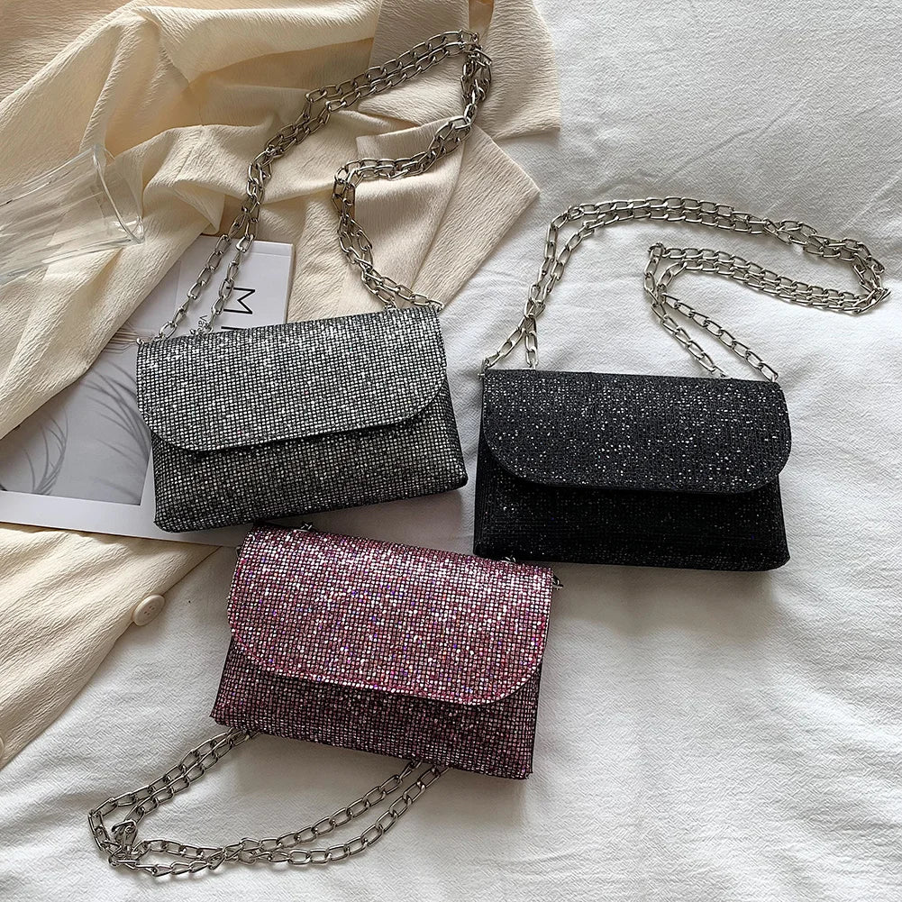 Sequins Underarm Shoulder Bag Female Leather Party Wedding Purses Handbag