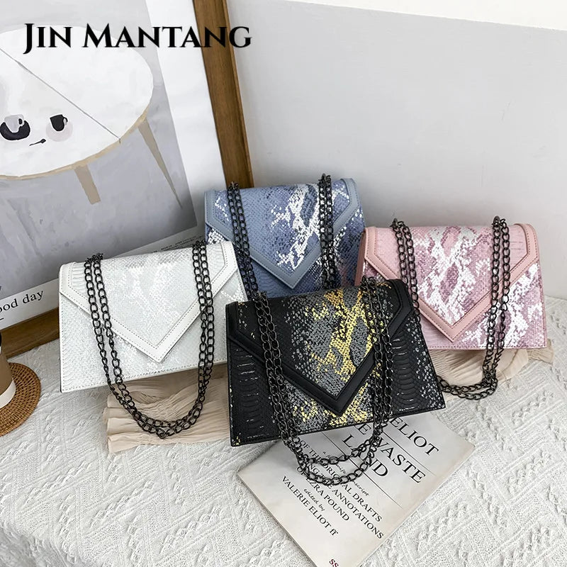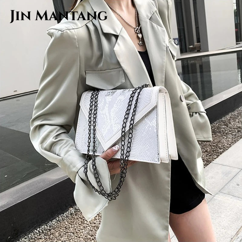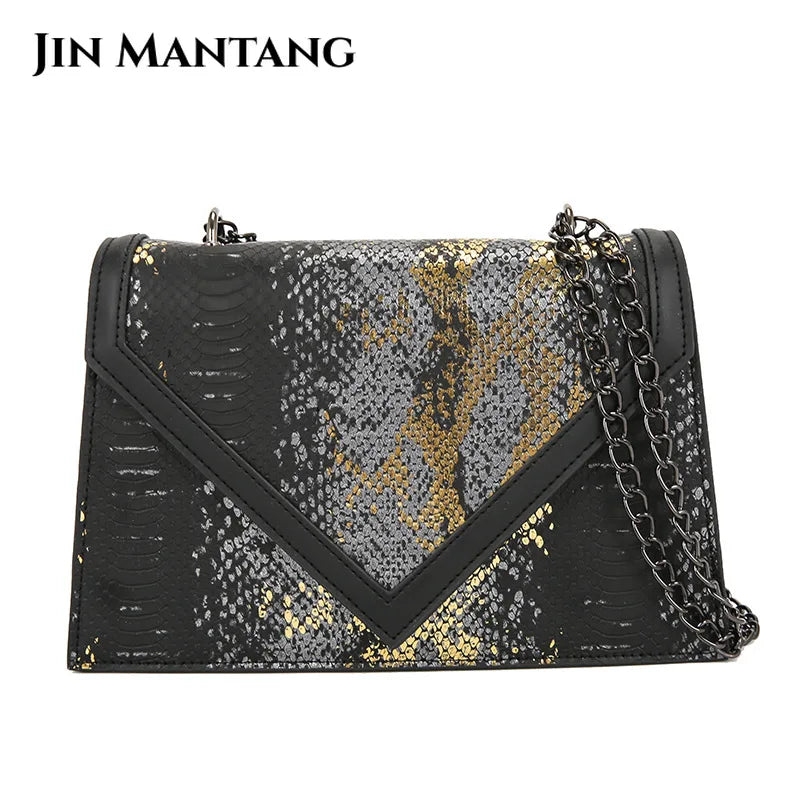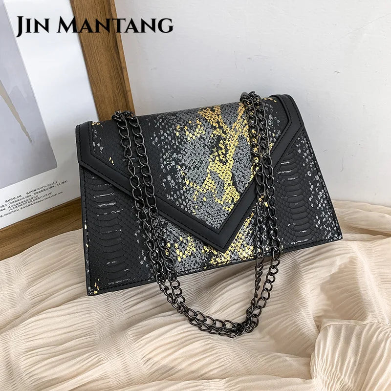 Elevate your style with this serpentine flap shoulder bag featuring a chain design. Perfect as a messenger bag, this purse is both trendy and practical.