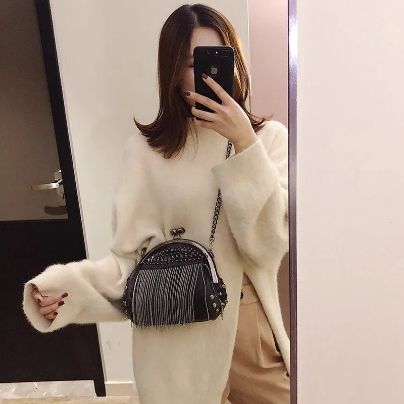 This stylish messenger bag features a tassel design, perfect for girls and women. It can be worn as a shoulder bag or crossbody bag.