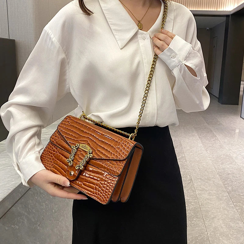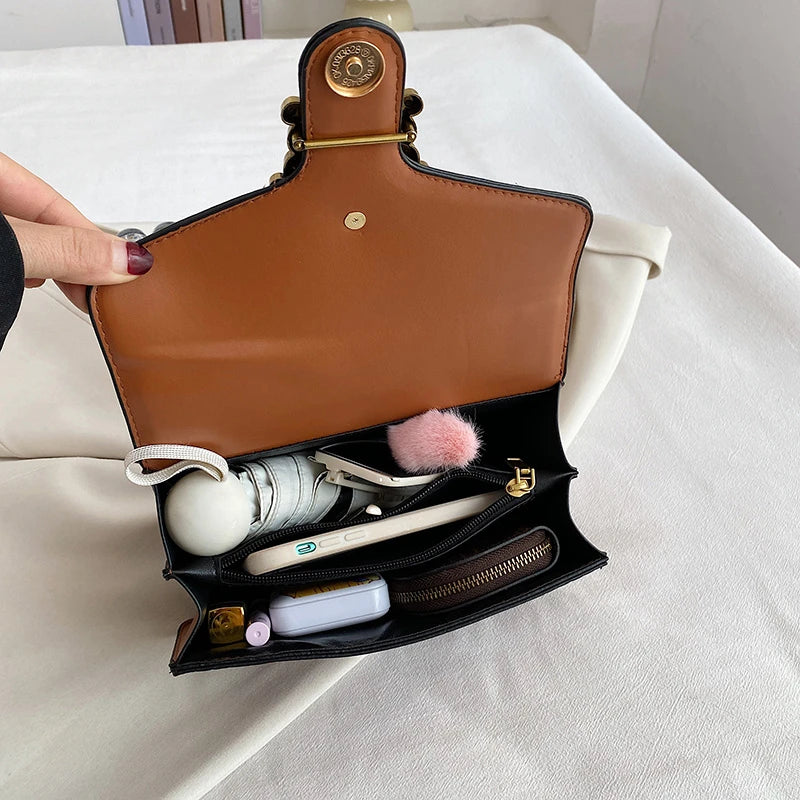 This shoulder bag is perfect for girls who want a stylish and trendy accessory. It features a chain strap and a small square design, adding a touch of personality to any outfit.