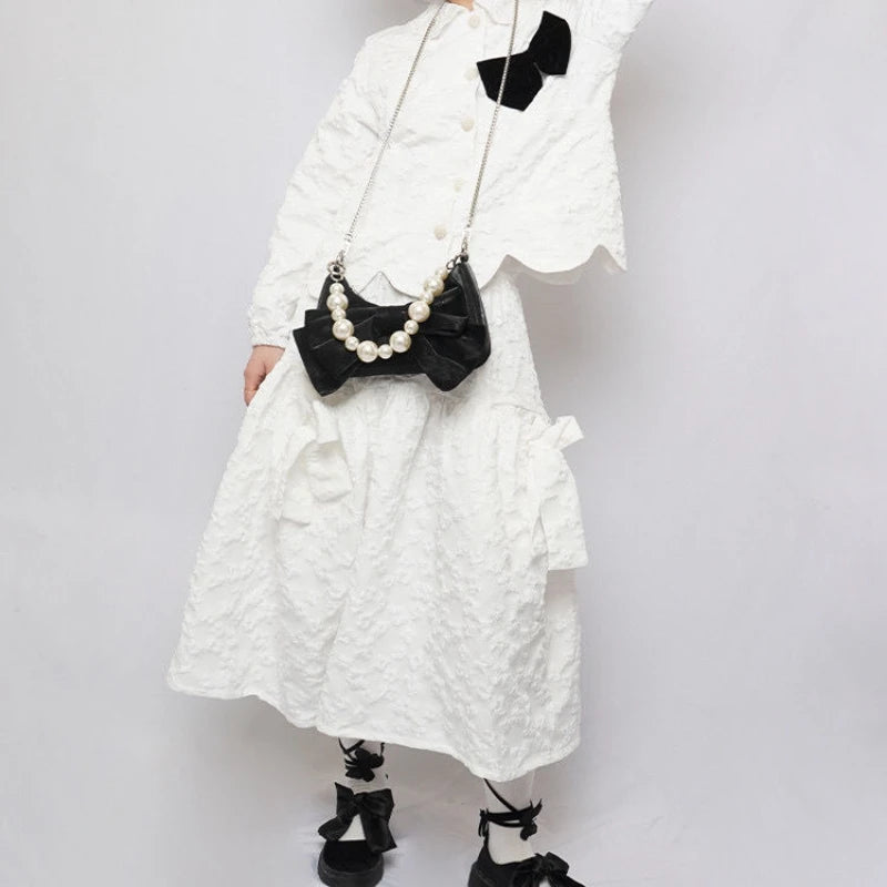 Shoulder Bag Women Sweet Bowknot Chains Crossbody Zipper PU Leather Handbag