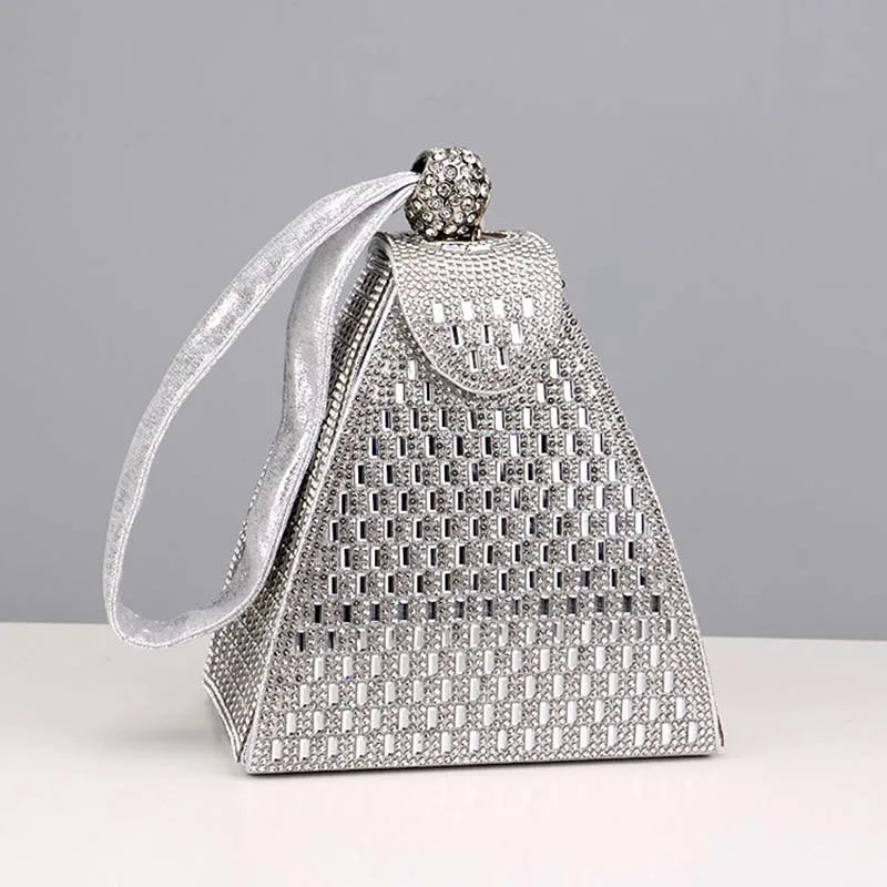 Silver Rhinestones Clutch Triangle Evening Bag