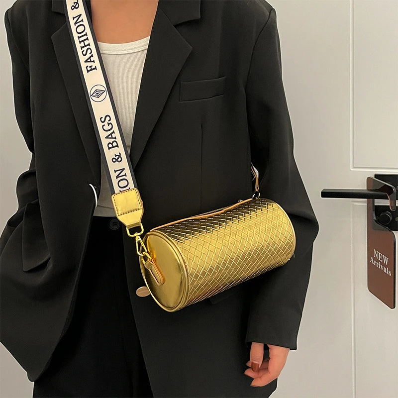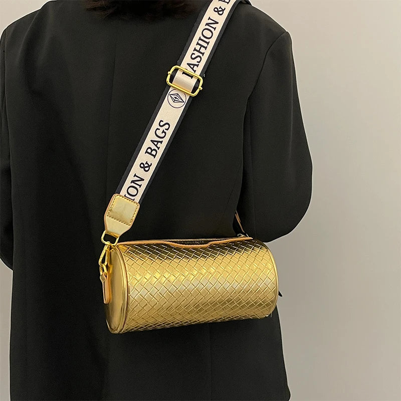This stylish barrel-shaped shoulder bag in silver is perfect for women on the go. Made of high-quality PU leather, it is ideal for casual outings or travel.