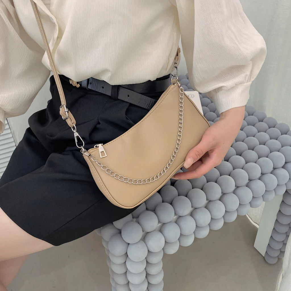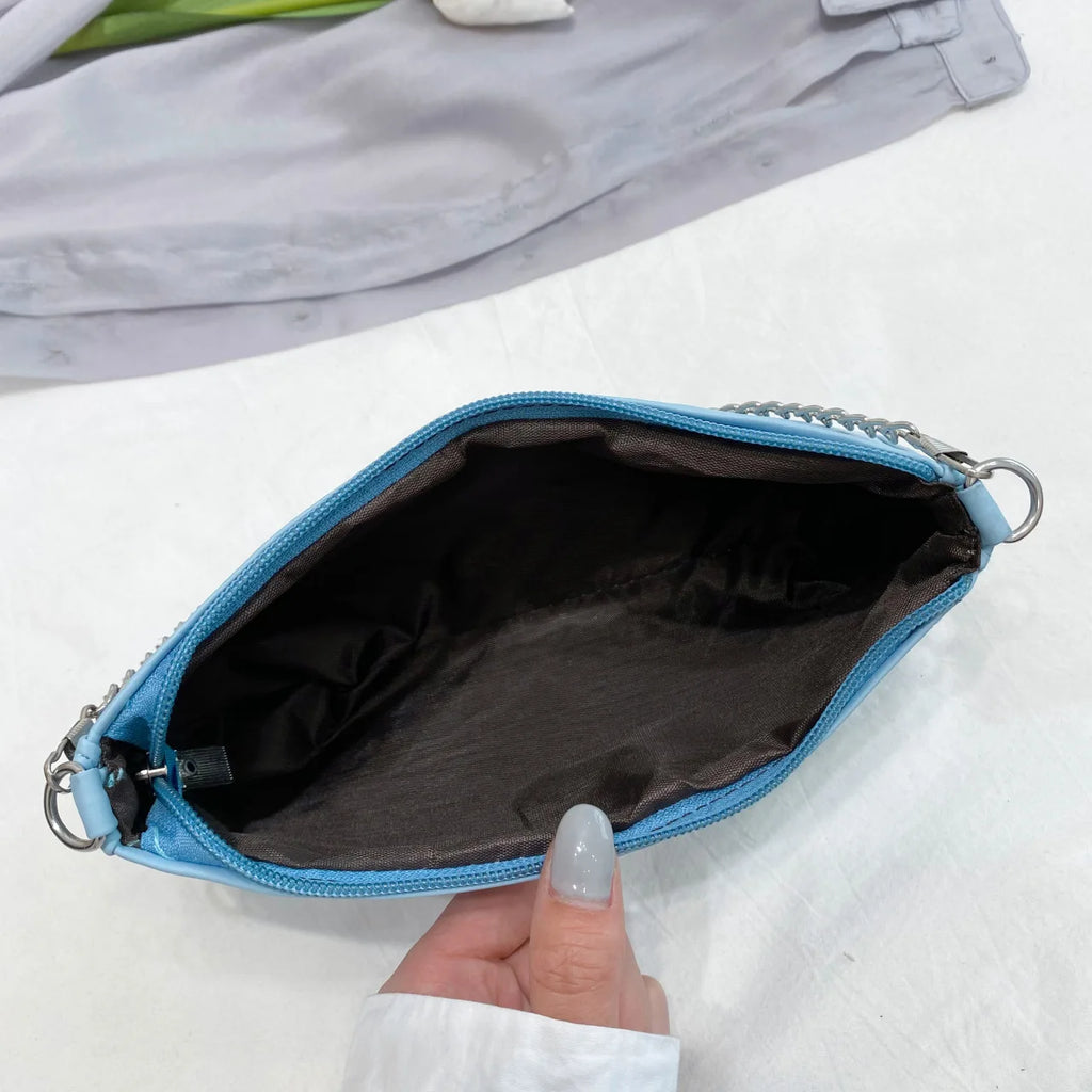 Small Chain Clutch Armpit Shoulder Bag Solid PU Leather