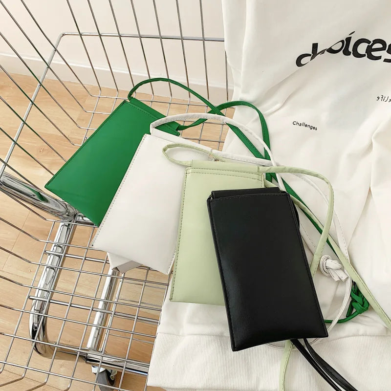 This small crossbody bag is made of matte leather and features a stylish design. It can be used as a shoulder bag, messenger bag, or clutch. Perfect for carrying your phone and essentials.