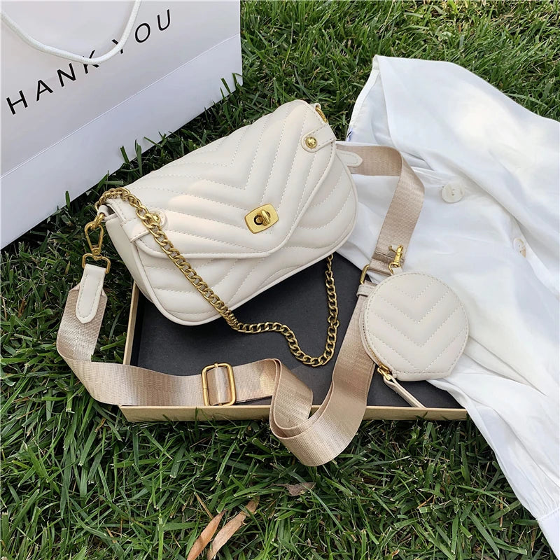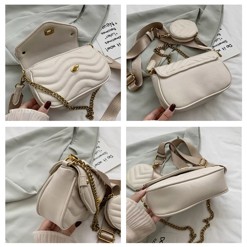 Small PU Leather Chain 2 PCS/SET Shoulder Bag Women Purse and Handbags