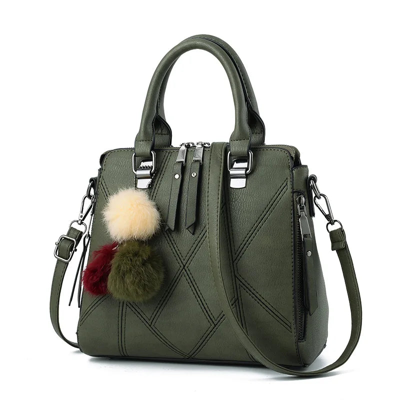 Stay stylish with this sweet lady handbag featuring a fur ball design. Made of high-quality PU leather, this messenger bag is perfect for any occasion.