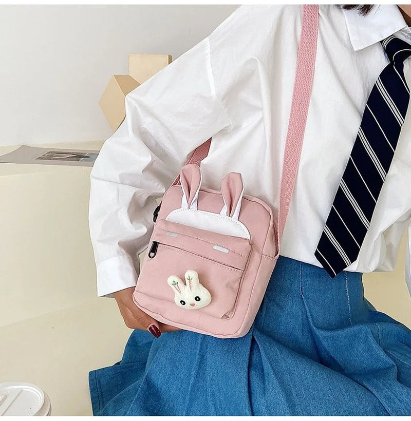This cute handbag features a Japanese cartoon design with a rabbit motif. Made of durable nylon, it is perfect for everyday use.
